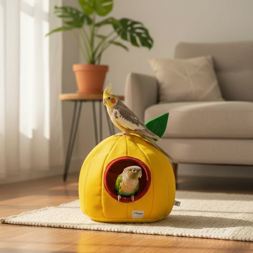 لانه و مخفیگاه پرنده کدو تنبل رایا پت تهیه شده با بهترین پارچه و در رنگ بندی متنوع دارای استحکام بالا در برابر وزن پرنده